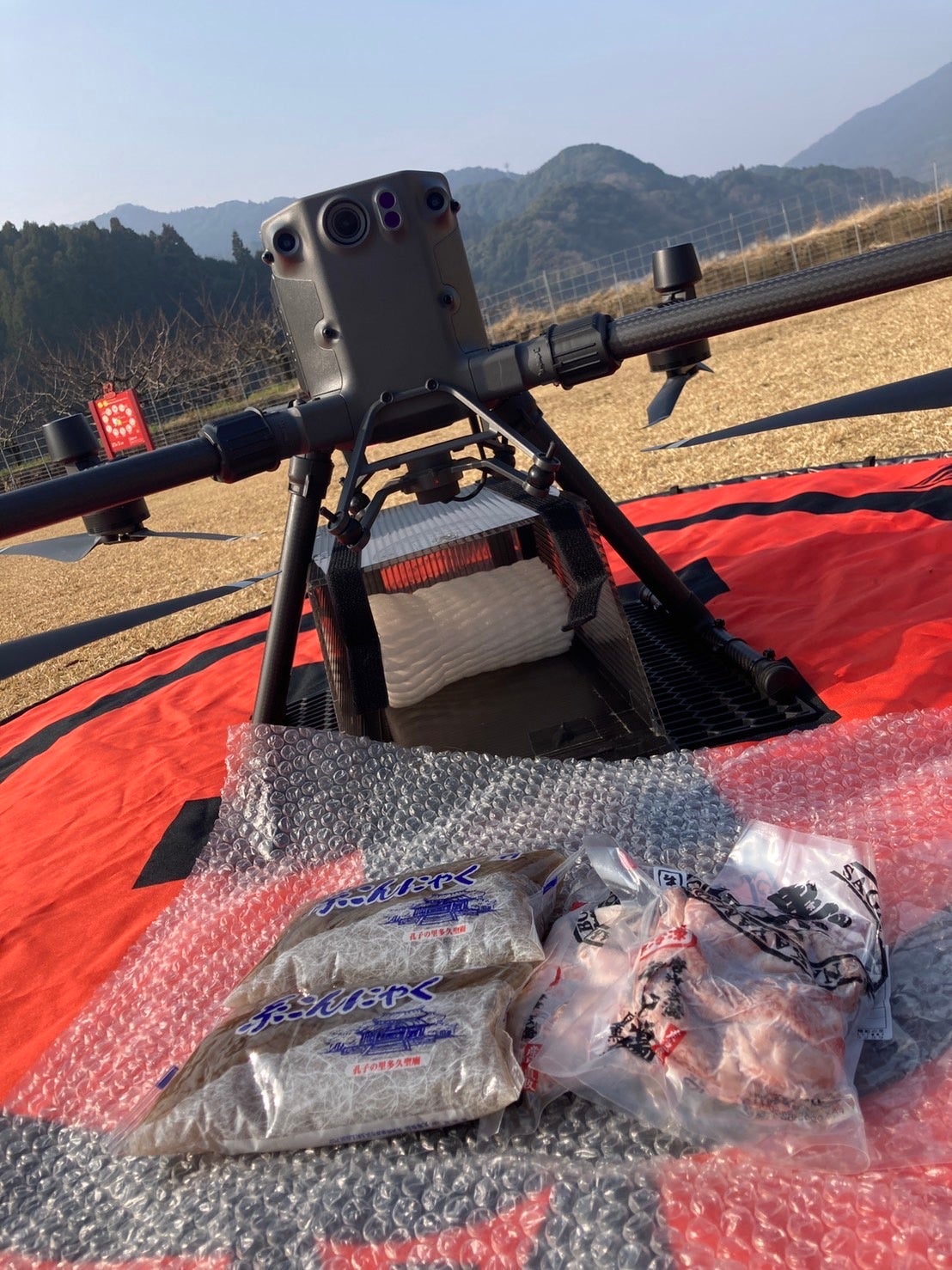 高齢化の進む西多久地区でのお買い物 物流実証飛行