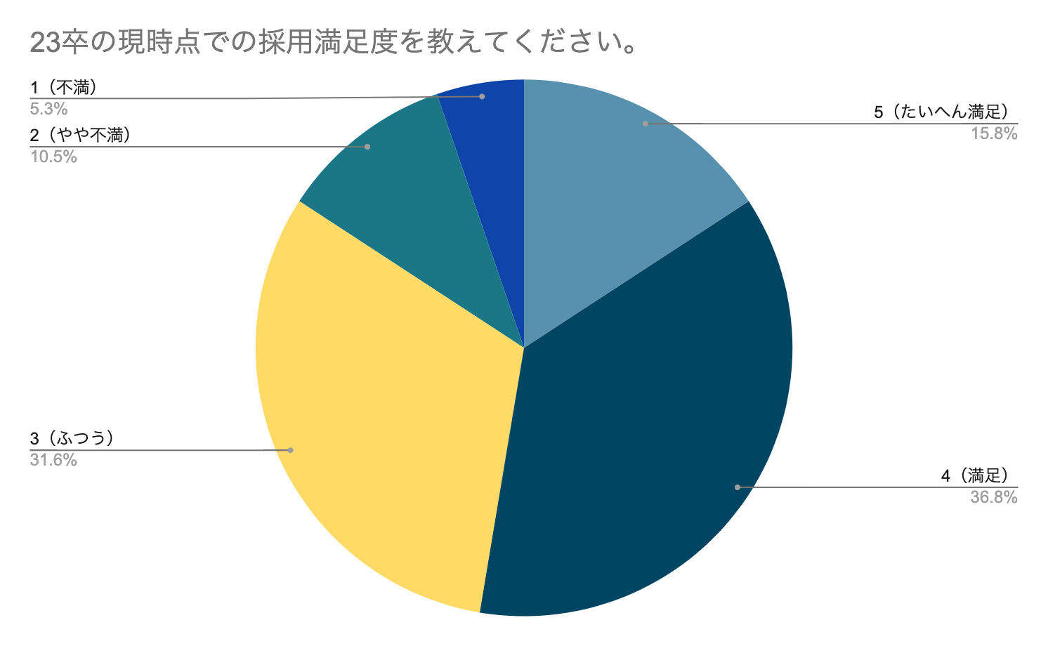加えて、現時点での採用満足度に関しては、23卒採用に関しては「たいへん満足」「満足」という回答が、半数以上を占める結果となりました。