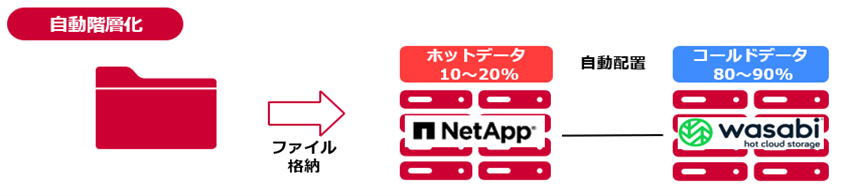 アクセス頻度が高いホットデータはストレージ上に配置し、アクセス頻度が低いコールドデータはWasabiの