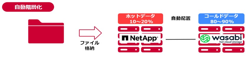 「Wasabi オブジェクトストレージ」※3に配置する自動ティアリング(階層化)により、ストレージ関連コ