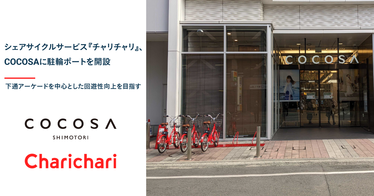 【熊本エリア】シェアサイクルサービス『チャリチャリ』、COCOSAに駐輪ポートを開設