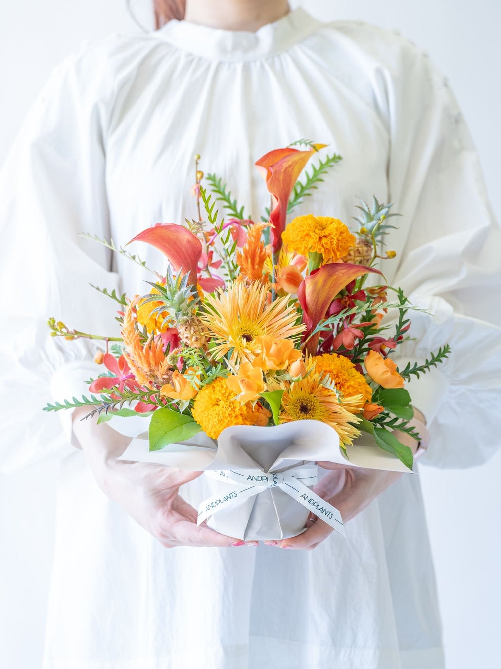 アンドプランツのフローリストが一つ一つ丁寧に制作する花束やドライフラワー、人気の観葉植物の計12商品からお好みの商品をお選びいただけます。