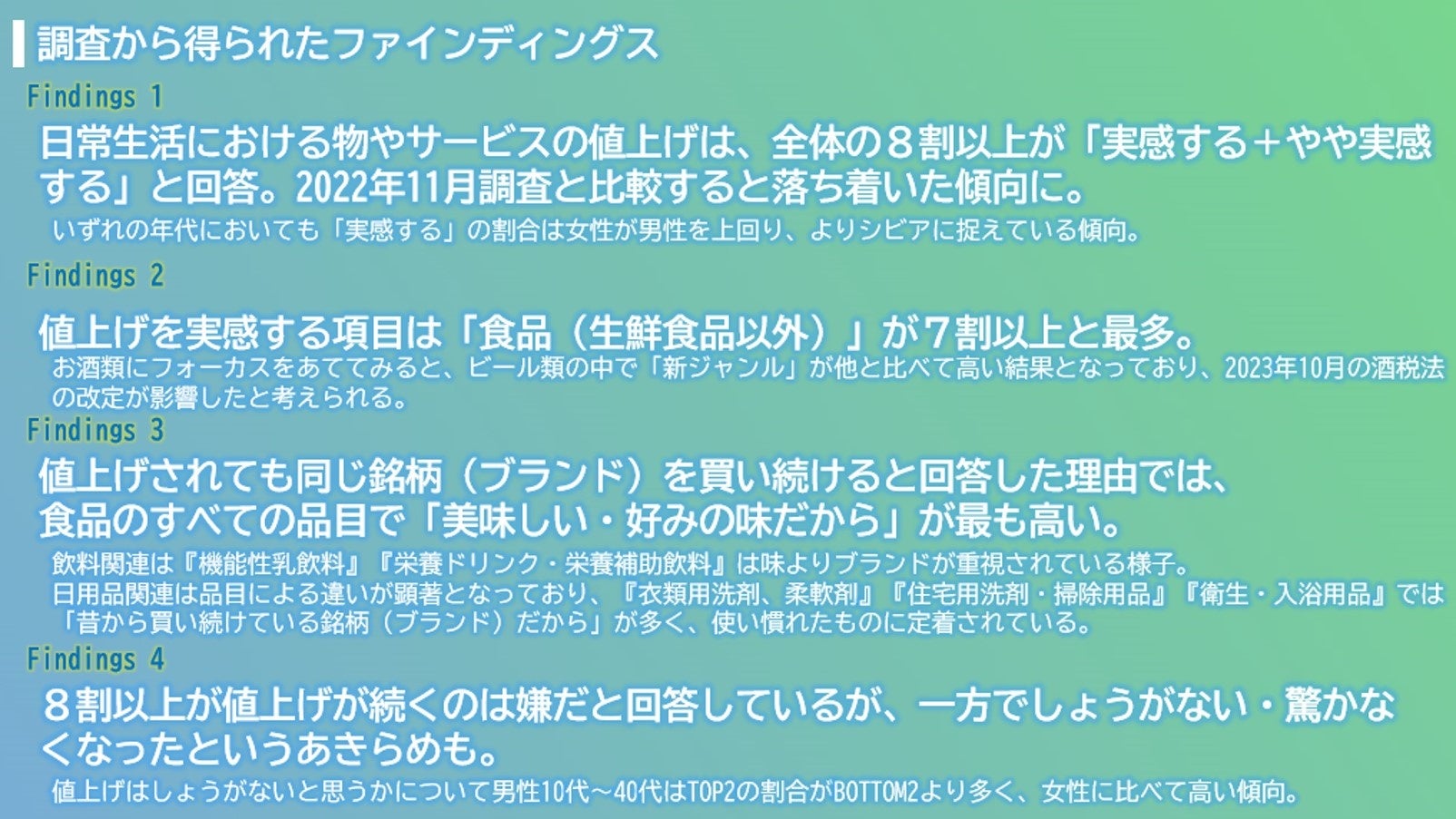 以上、長期化する値上げラッシュ、消費者はどう感じている? 値上げに関する意識・行動調査の結果を抜粋してお伝えしました。