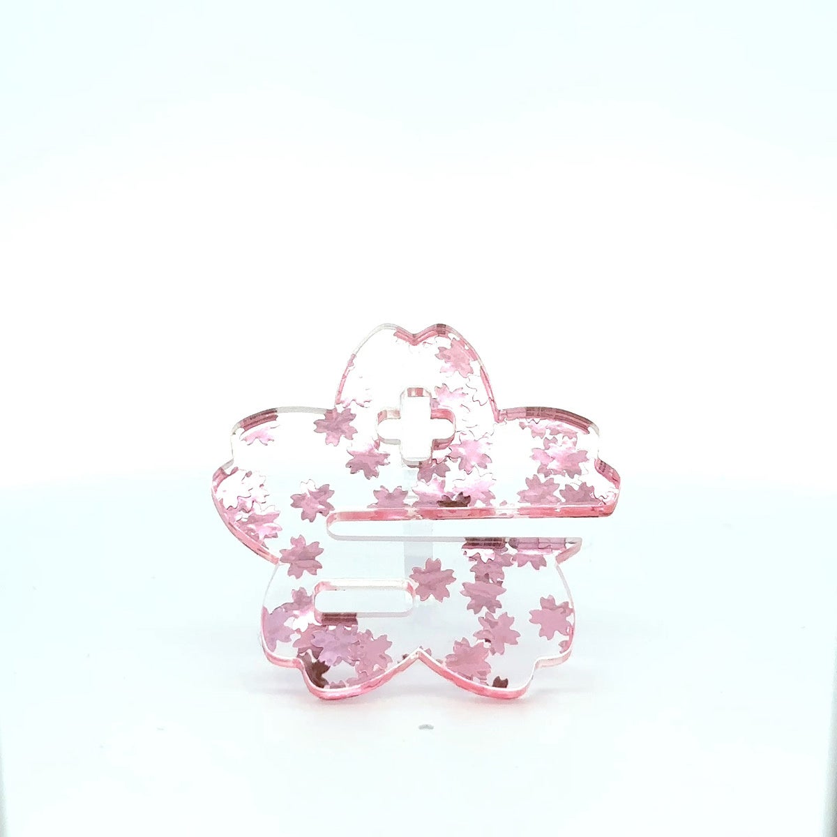 「桜フレーク推し撮リング」は、桜がちりばめられたかわいいアクリルで作った推し撮リングです。