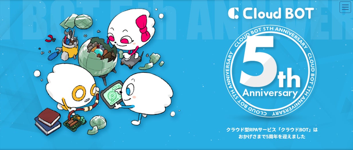 クラウド型RPA『クラウドBOT®』が5周年記念コンテンツを公開
