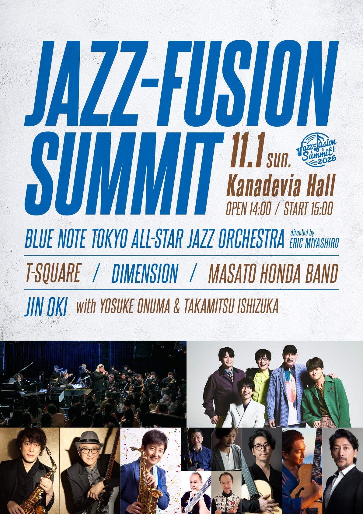 日本のジャズ・フュージョン界を代表するトップ・アーティストが集結した豪華共演で、毎回大反響を呼ぶ「JAZZ-FUSION SUMMIT」の開催が決定!第4回となる今年のラインナップは、結成35周年を迎えるDIMENSION、フラメンコ・ギターの第一人者、沖仁が小沼ようすけと石塚隆充を迎えたスペシャル・トリオ、スター・プレイヤー揃いの本田雅人バンドに加えて、2023年の初回から出演するこのイベントの“顔”的存在のT-SQUARE、そしてブルーノート東京オールスター・ジャズ・オーケストラ directed by エリック・ミヤシロの5組。時代を超えて愛される名曲の数々、白熱の超絶技巧、華麗なバンド・アンサンブルを堪能し、ジャズ・フュージョンの魅力に酔いしれる贅沢なステージ、この日この時だけの音楽の魔法を堪能したい。