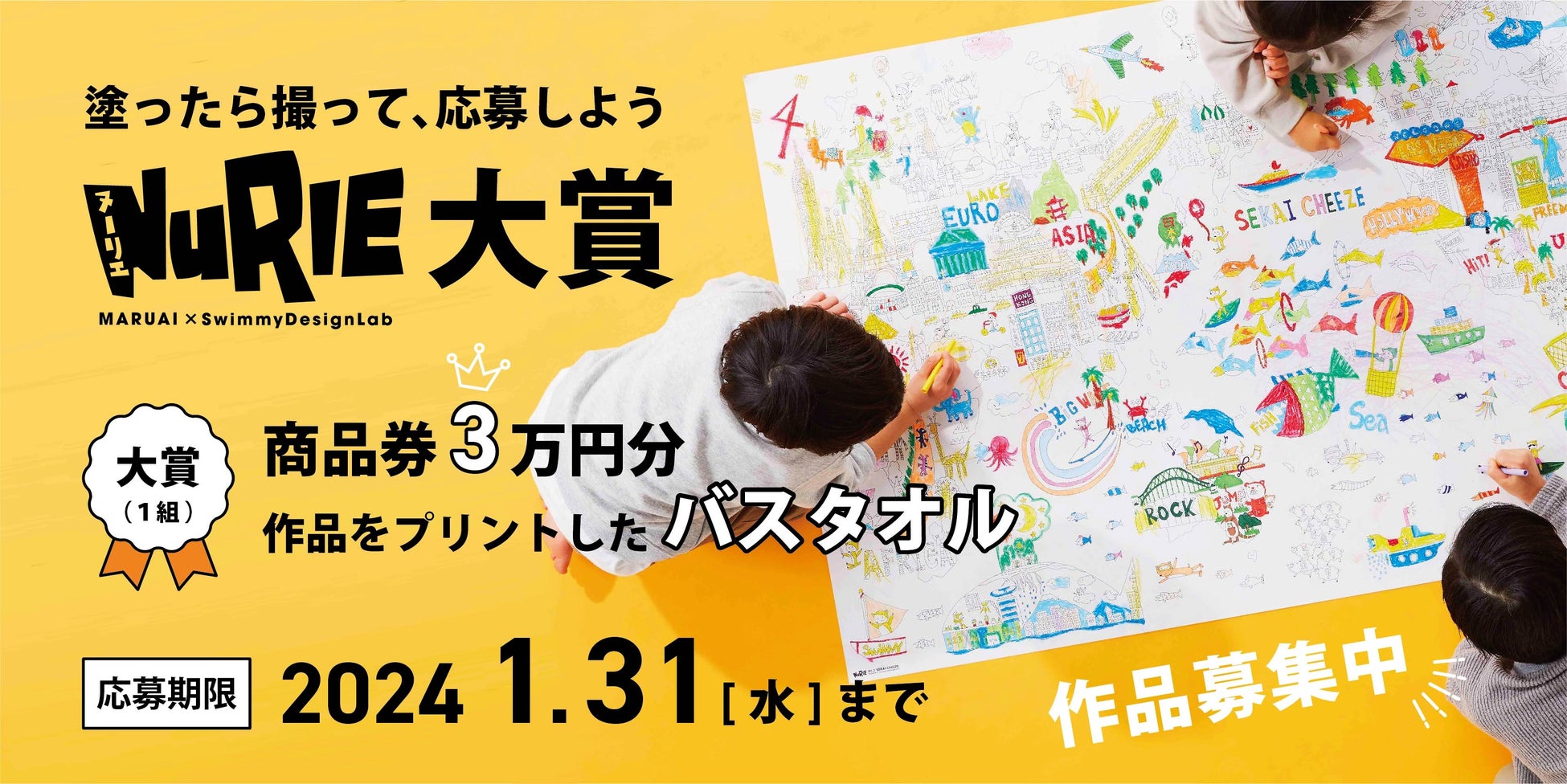 応募方法:NuRIE大賞公式サイトの応募フォーム(https://maruai.co.jp/nurie/award/inputform.php)および、Instagram(完成した作品の写真を指定のハッシュタグ「#NuRIE大賞」とメンション「@nurie_official」をつけて投稿)