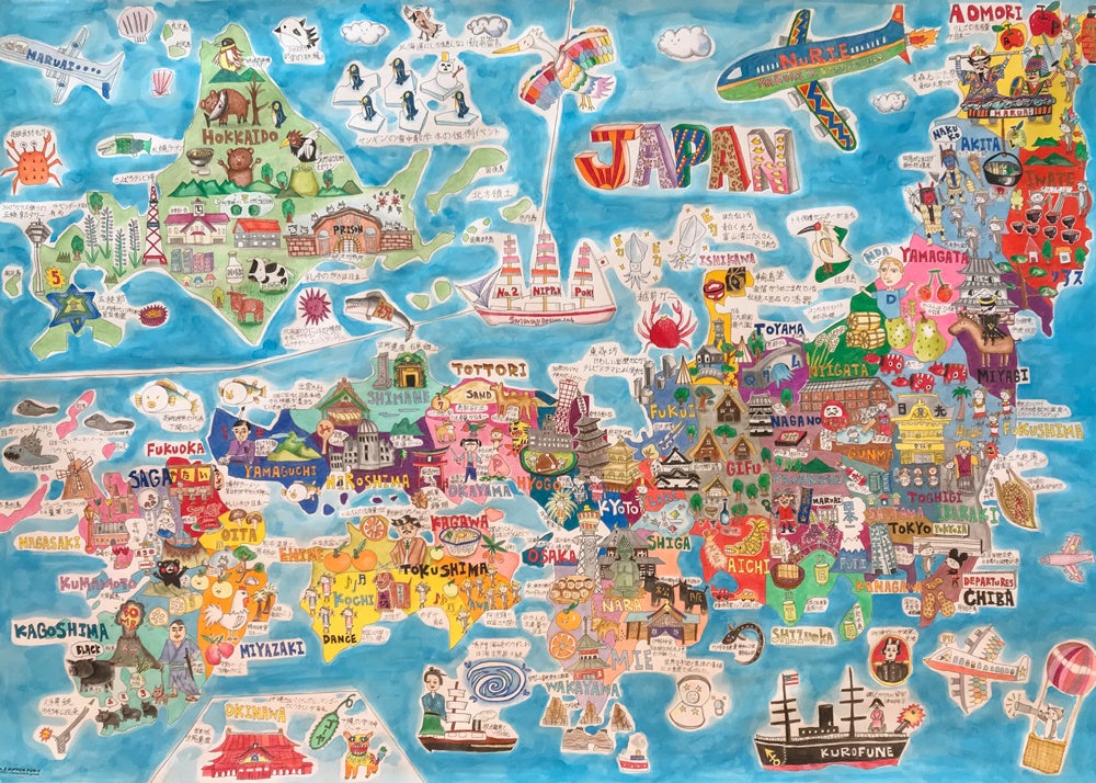 応募者コメント:夏休みの自由研究として塗り絵と地理の勉強を兼ねてやりました。塗り絵は色鉛筆3種類を使って、色を混ぜて何度も重ね塗りしたり、影の付け方を研究しながら立体的になるように塗ったり、線からはみ出さないように気をつけました。各都道府県の名所や特産物を調べて短い説明文を書きました。調べるのが楽しくて時間がかかって、出来上がったのは夏休み最後の日で焦りました。とても楽しくできました。