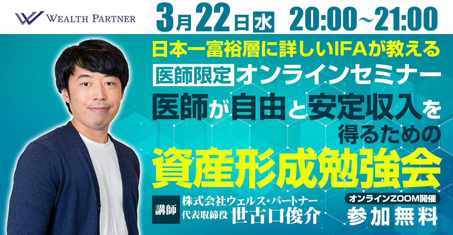 【3月22日(水)20:00開催オンラインセミナー】医師が自由と安定収入を 得るための資産形成勉強会を開催