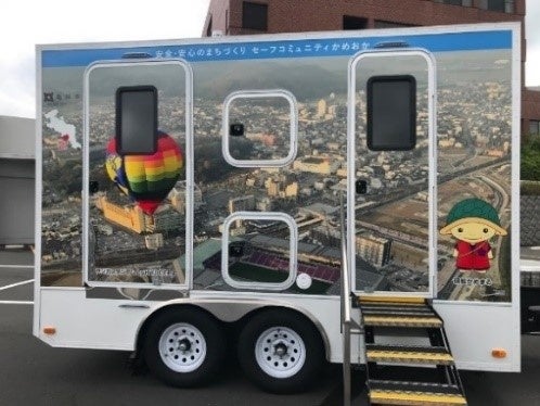 災害時に使用するトイレトレーラーなどの各種車両展示