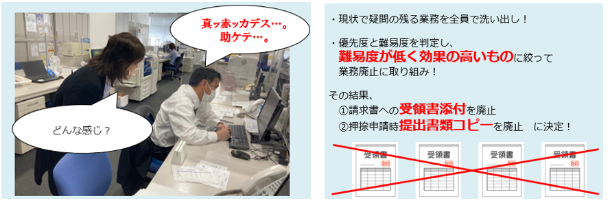 ・本当に必要か疑問がある業務を洗い出し、必要なければやめる決断を実施 など
