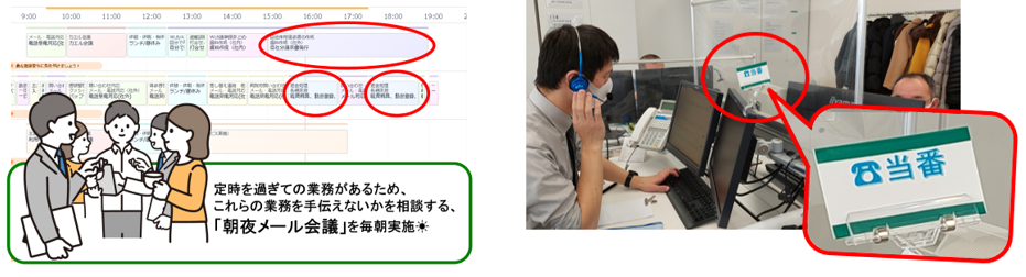 ・業務負荷が高い社員をサポートできるように朝礼時に朝メールで負荷状況を共有
