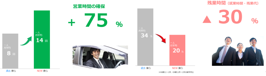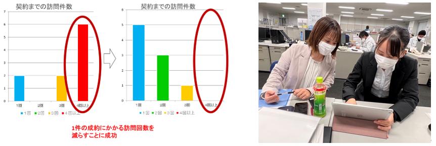 ・契約までの訪問回数を大幅に減らし、1回の訪問で契約できる割合を2.5倍に増やした