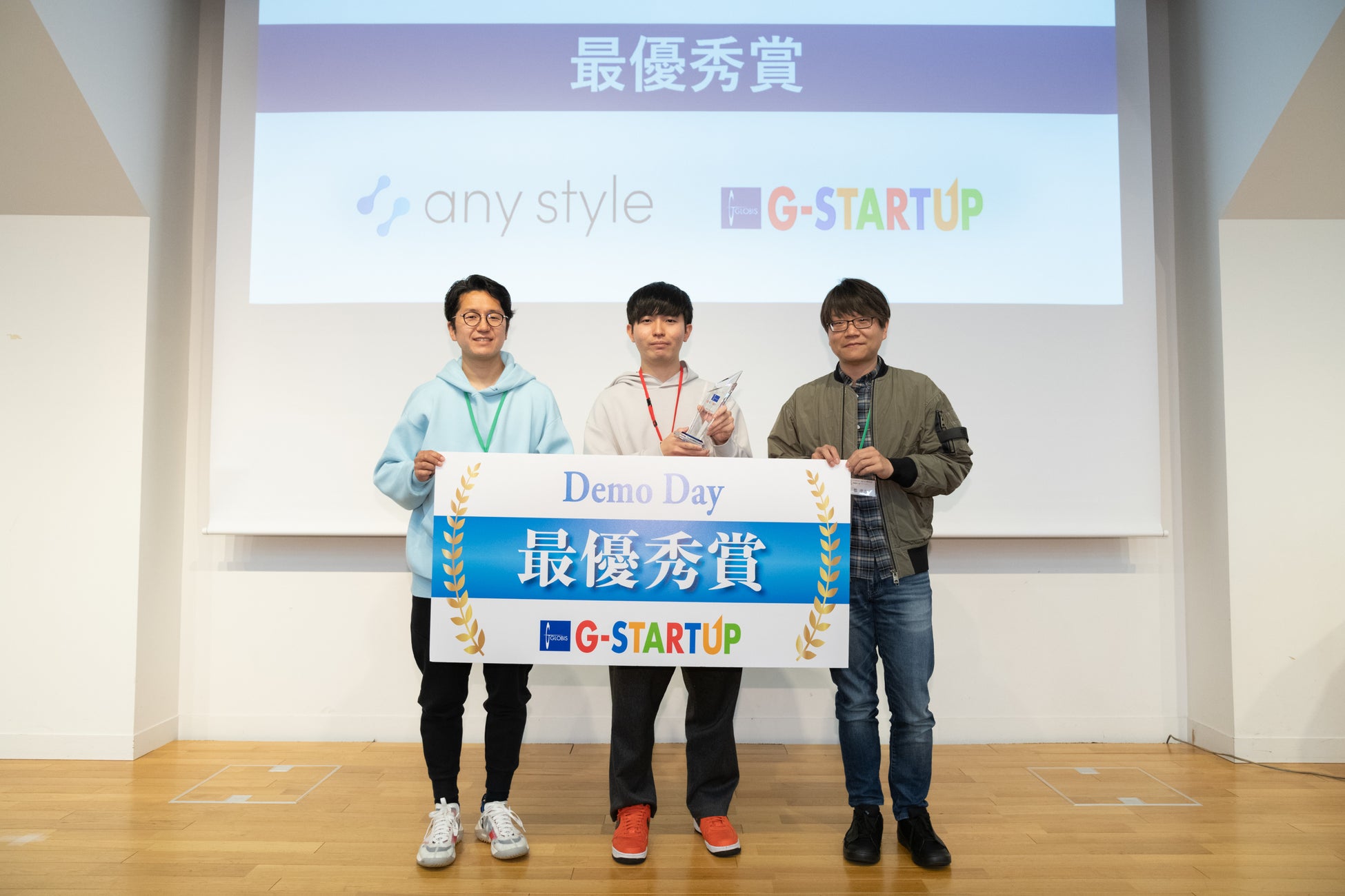 G-STARTUP 4th BatchのDemo Dayは、集まった国内有数のベンチャー・キャピタル、エンジェル投資家ら80名以上の出資検討者を前に、採択企業11社が事業のプレゼンテーションを実施。審査の結果、株式会社any styleが最優秀賞、株式会社FLINTZ、キビタス株式会社の2社が優秀賞に決定しました。加えて、プログラム期間中に最も成長した企業を表彰するベストグロース賞は株式会社アロエに、デモデイ参加者の投票によるオーディエンス賞は、株式会社Scrumyに決定しました。最優秀賞を獲得した株式会社any styleは、昨年3rd batchにIncubate trackとして参加、4th batchはMain Trackとして2期連続の採択となり、この度念願の最優秀賞を獲得しました。