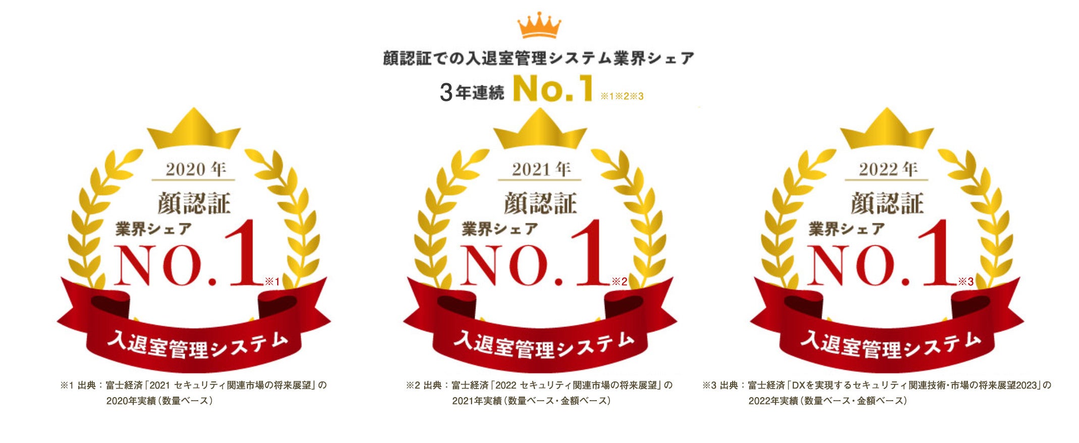 顔認証による入退室管理システムで3年連続マーケットシェアNo.1を獲得