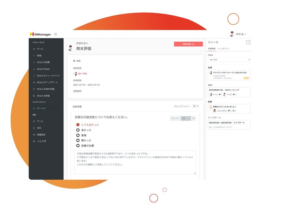事業内容 :パフォーマンスマネジメントサービス「HiManager」及び人事コンサルティング