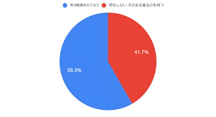 さらに五月病の不調を感じたことがある人のうち、41.7%が「なにもしない/そのまま治るのを待つ」と回答しています。残り58.3%は適度な気分転換をおこない五月病に対処しています。