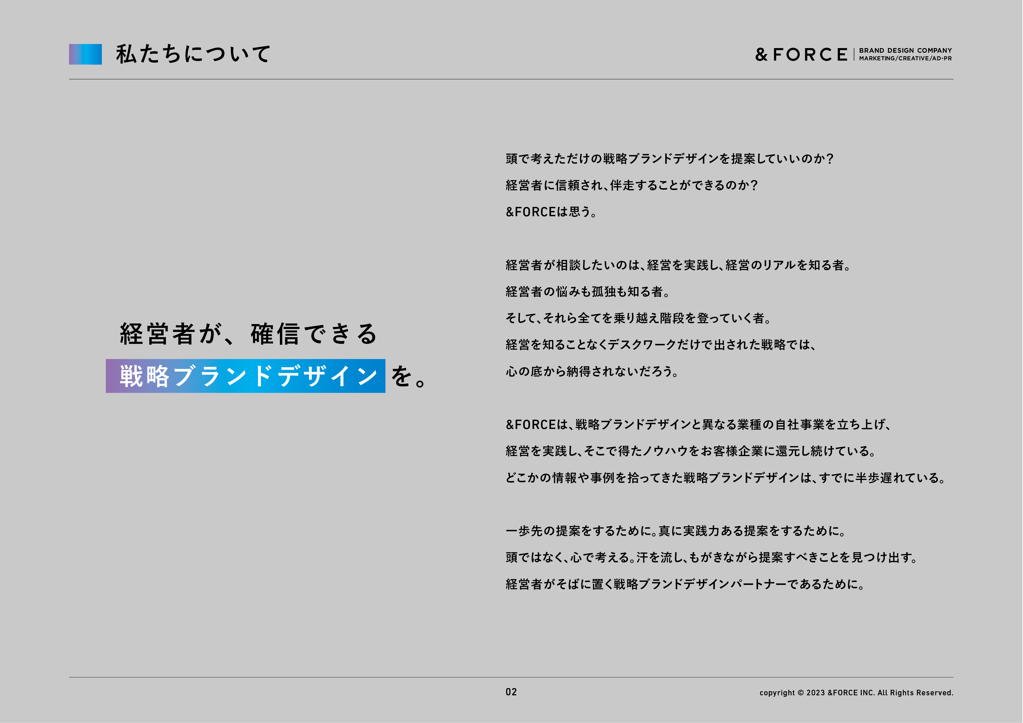 社会に還元し、『豊かさを循環』を生み出す。アンド・フォースがブランディングに取り組む理由です。