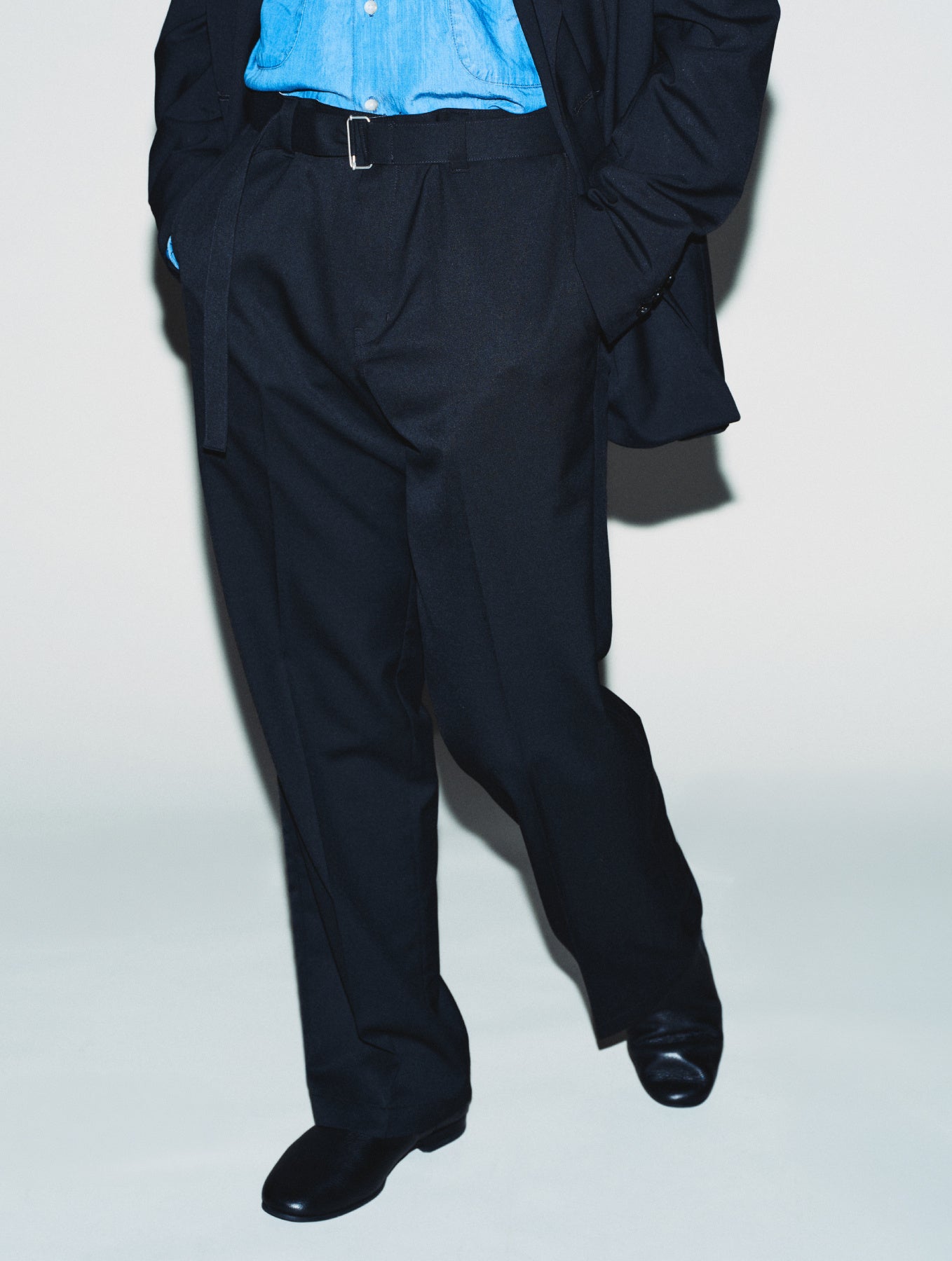 本来ベルトレスで展開されている「875」に、今回のコラボレーションでは共布のベルトを付属。