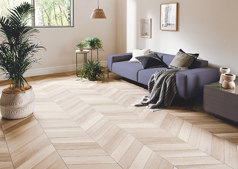 ヘリンボーン柄で、⾼級感漂う動きのあるお部屋に