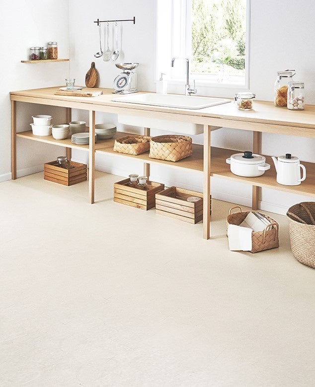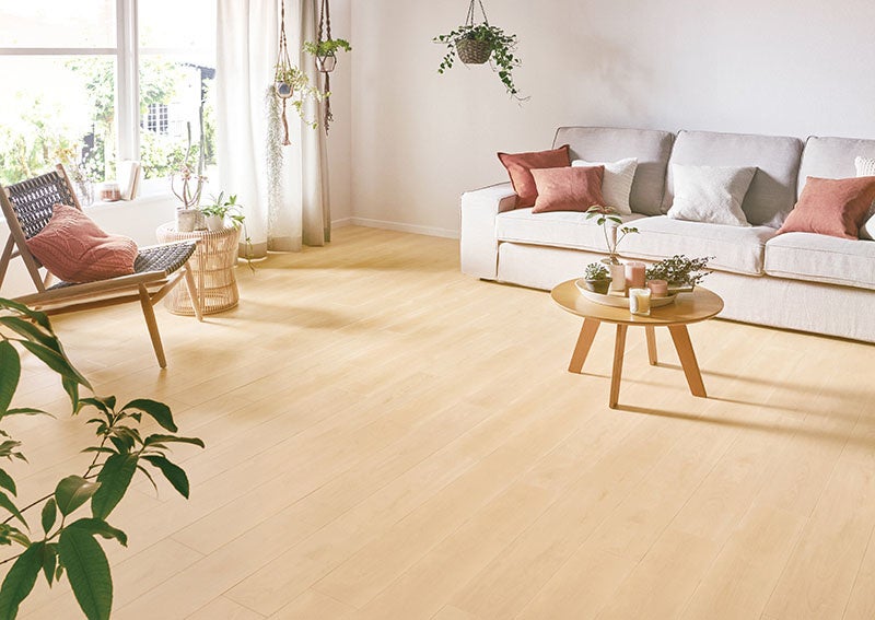 近年、ビニル床タイルは、フローリングと⽐較した際の施⼯性やコストメリット、デザインバリエーションの豊富さから、賃貸住宅物件や⼾建てリフォームでの需要が⾼まっています。加えて、従来よく使⽤されるクッションフロアと⽐較しても、より⾼い耐久性や意匠表現を持っていることから、エンドユーザーからの⼈気が上昇しています。