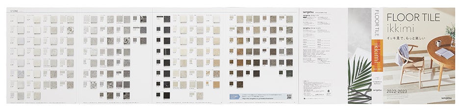 株式会社サンゲツ(本社:愛知県名古屋市、代表取締役 社⻑執⾏役員:安⽥正介)は、当社初となる住宅⽤ビニル床タイルの⾒本帳「FLOOR TILE ikkimi (フロアタイル イッキミ)2022-2023」を5⽉26⽇(⽊)に発刊します。住宅に⼈気の⽊⽬柄と⽯⽬柄 計238点を、⼀覧で⾒ることができるコンパクトな構成で、“イッキミで、もっと楽しい” 床材選びを実現します。