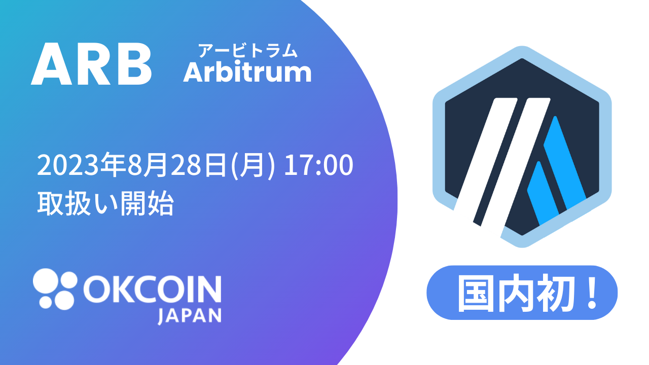 当社は、OKCoinJapan(暗号資産取引所)にて、『アービトラム(ARB)』を、2023年8月28日(月)に取り扱い開始することをお知らせいたします。これにより、OKCoinJapanは、28種類の暗号資産を取り扱うこととなります。