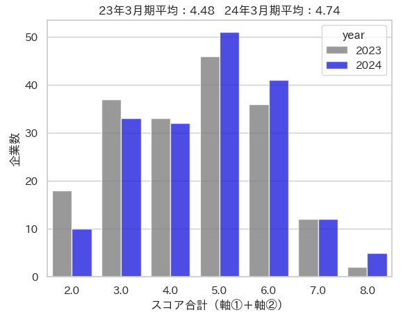 1. 2023年3月期に比べ、対象企業全体でスコア上昇