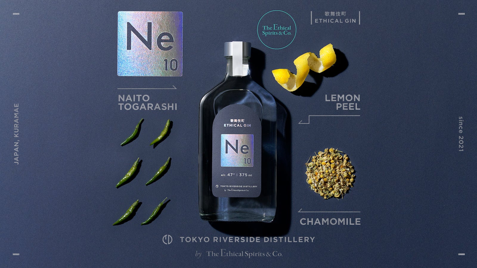 エシカル・スピリッツと東急株式会社、歌舞伎町の地元の方々と知恵を出し合い、コンセプト作りから試作までともにし、誕生した『Ne10』は、歌舞伎町を象徴する多様性とネオンを表現し、ネオンの元素記号Neと元素番号10、そして10種のボタニカルを使用していることからその名をつけられました。