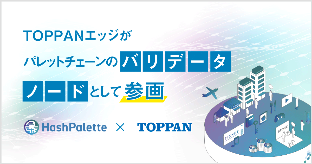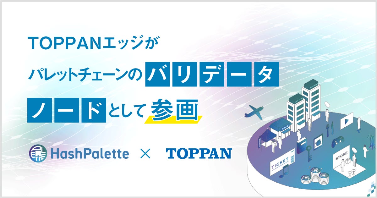 加えて、Web3領域でのデジタル通貨に関する検討の場においてTOPPANエッジと、HashPaletteの親会社である株式会社HashPort(本社:東京都港区、代表取締役CEO:吉田世博、以下HashPort)が共にWeb3領域・デジタル通貨についてのユースケース検討を行ってきたことから、この度、HashPaletteが運営するパレットチェーンのバリデータノードとして参画することになりました。