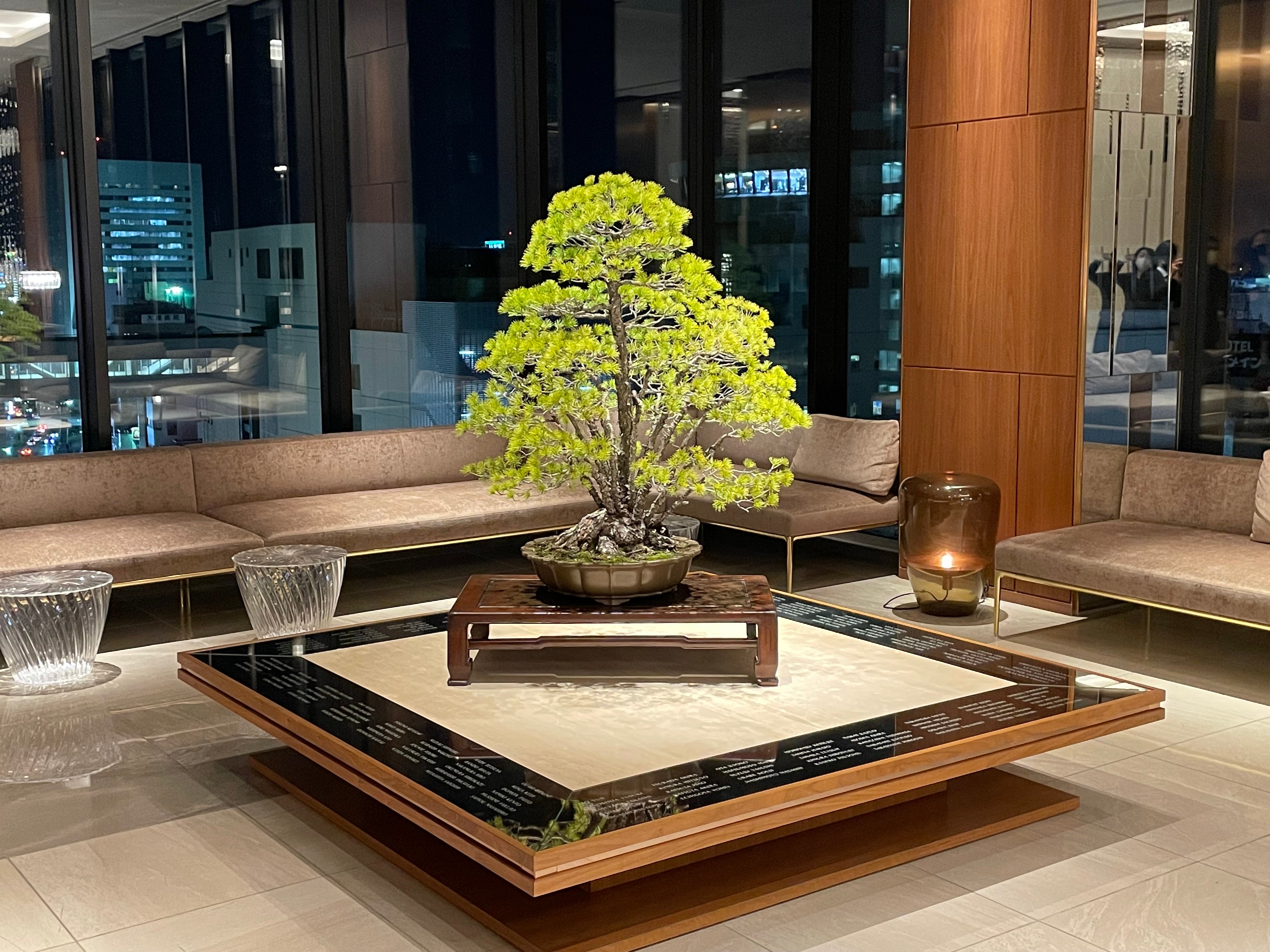 カンデオホテルズ大宮 さいたま市伝統産業の「大宮盆栽」をロビーとスカイスパに初展示 若手盆栽師の廣田敢太氏「盆栽の文化に触れて欲しい」~スカイスパのビジター利用開始と併せてお客様に地元の産業をPR~