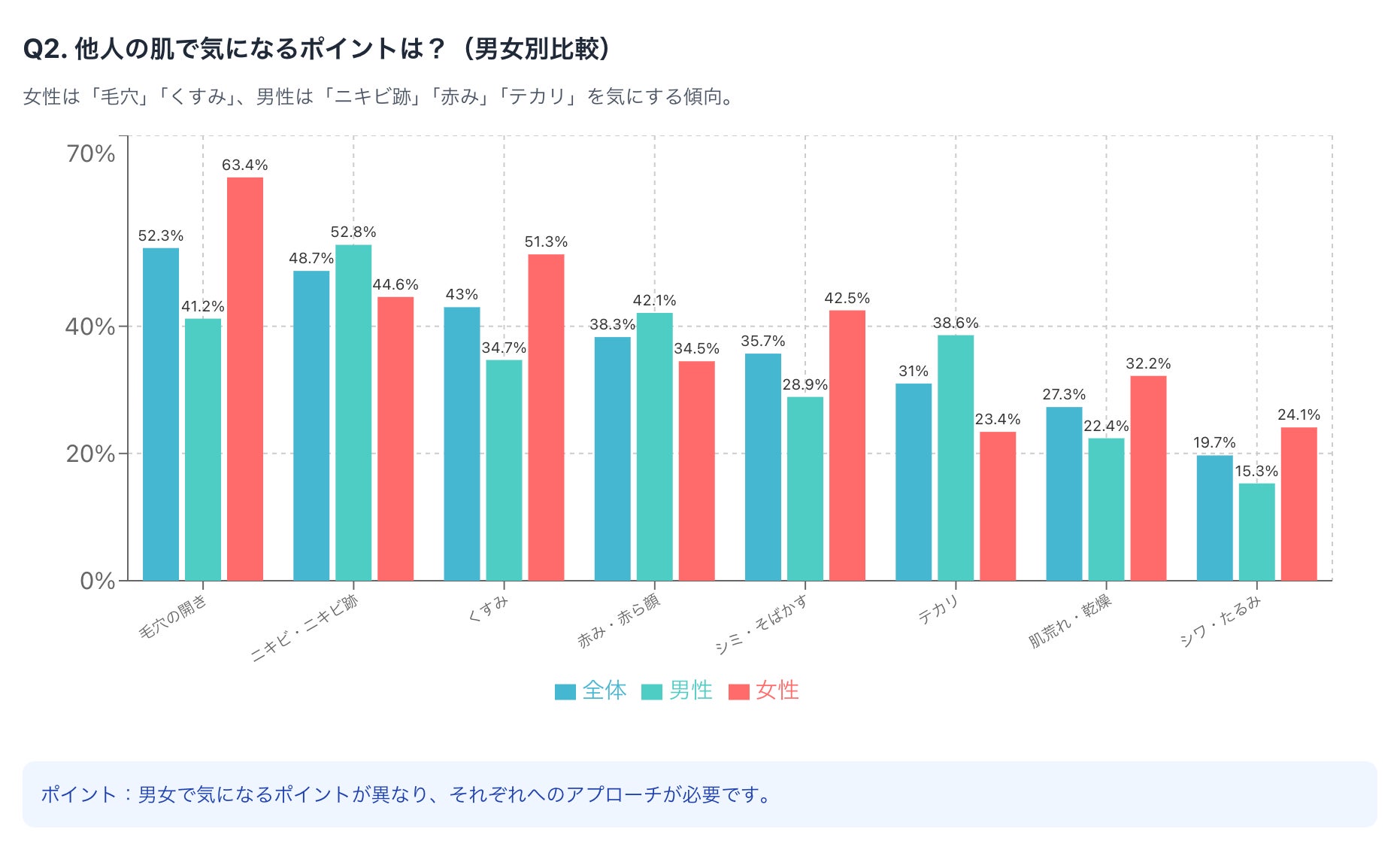 この結果は、「自分が思っている以上に、他人から肌を見られている」可能性を示唆しています。