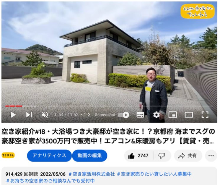 空き家活用YouTube公式「ええやん 空き家やん ちゃんねる」(登録者数2.56万人)/6月現在: