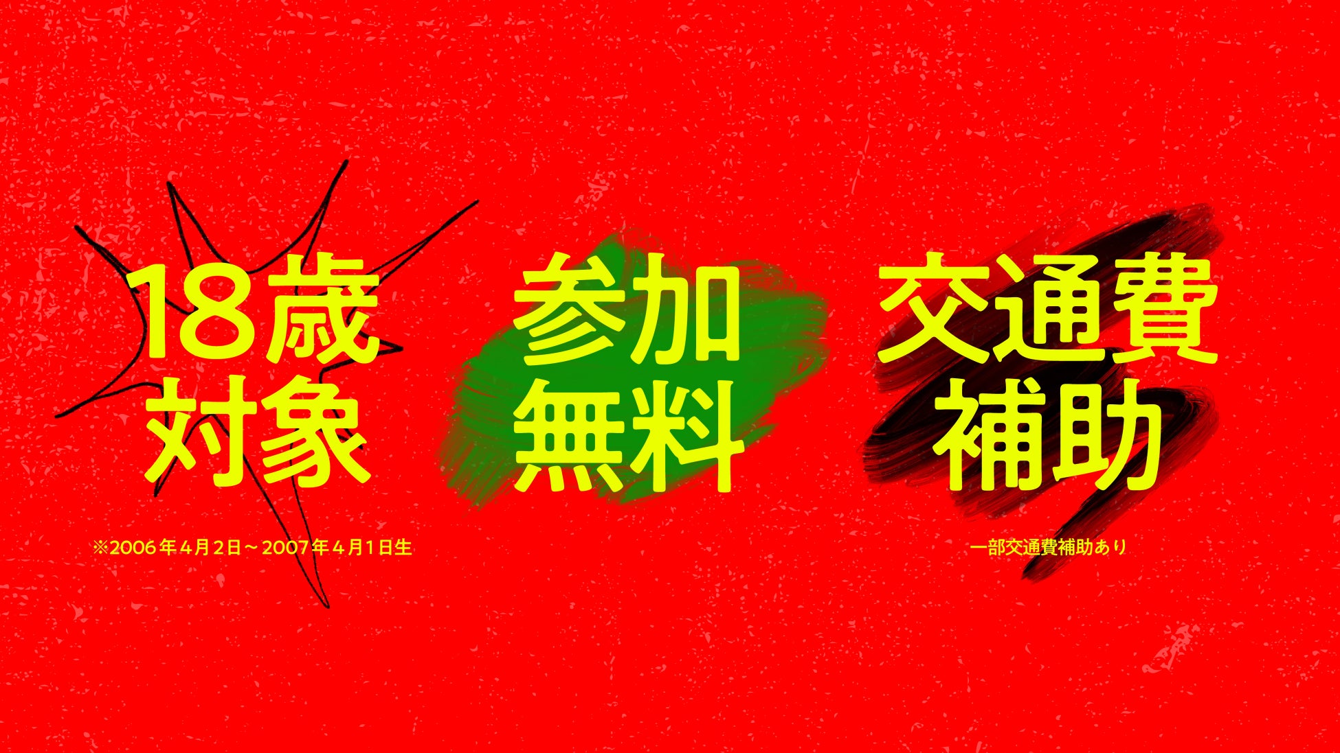 このイベントは、18歳たちが「参加したい」という気持ちを諦めることがないように、参加費は無料、全国各地から会場まで移動する交通費も一部支給します。