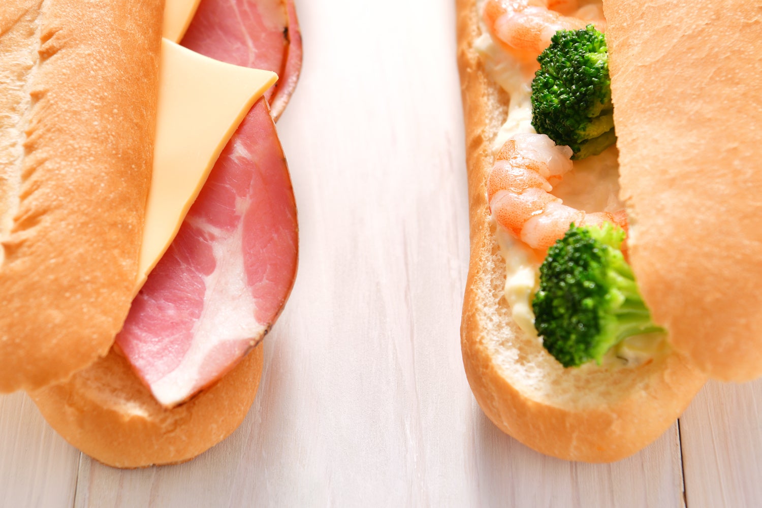 ■「カスクートサンド パストラミポーク&チェダーチーズ」(左)