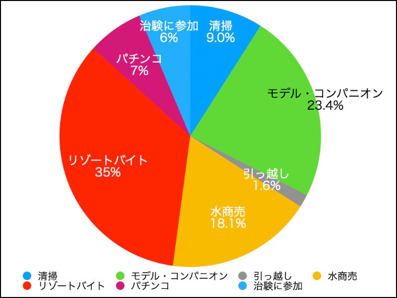 その他、モデル・コンパニオン、リゾートバイト、引っ越し、については、ほとんど選ばれませんでした。