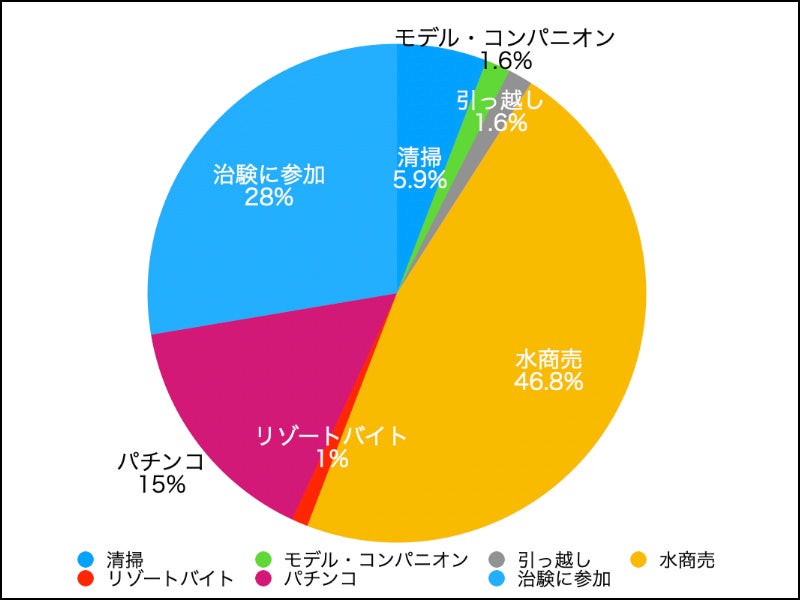次いで「治験に参加」→「パチンコ」→「清掃」の順となっています。