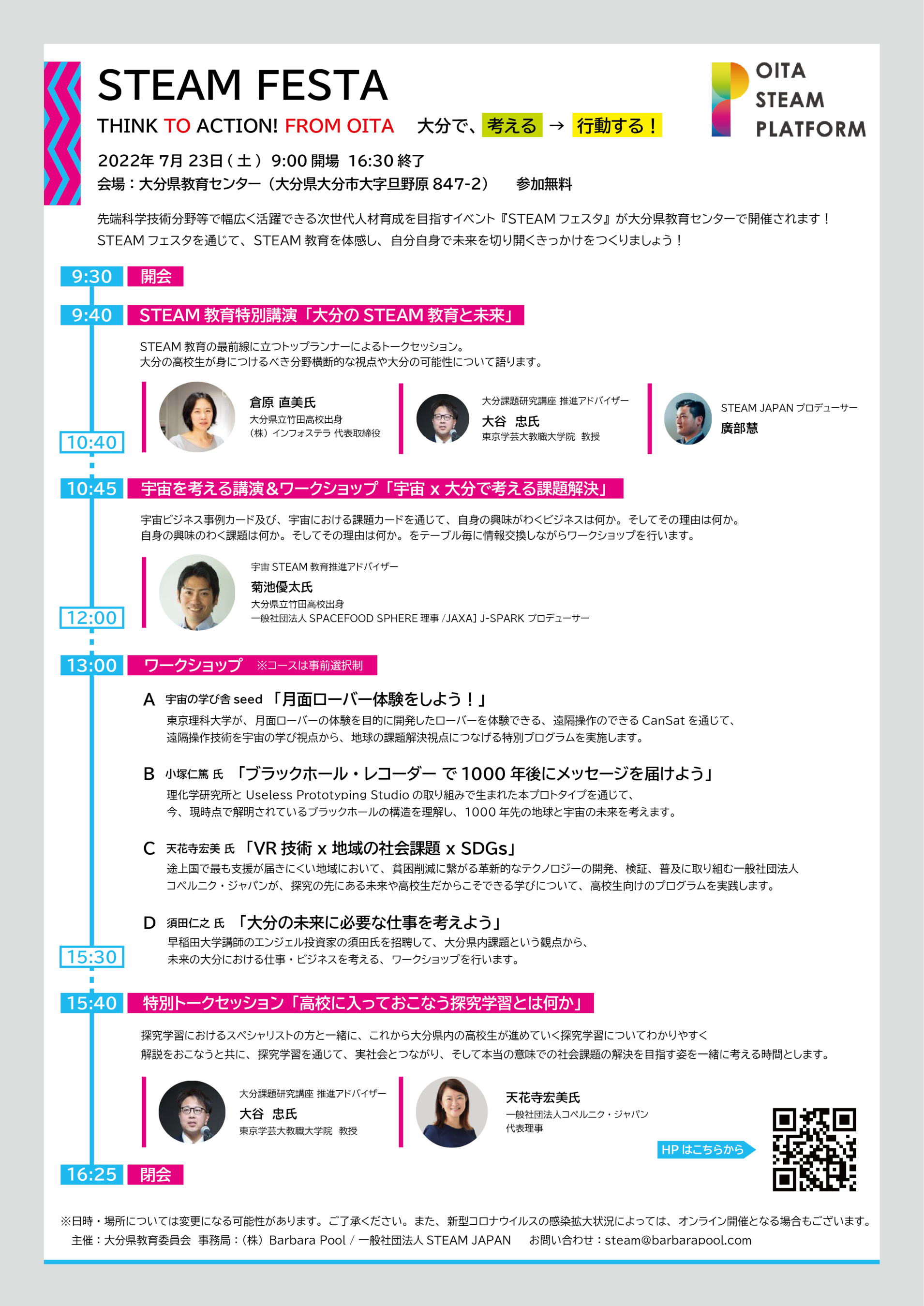 内容:先端技術分野のプロフェッショナルによる講演・OITA STEAM MISSION PROJECT発表会