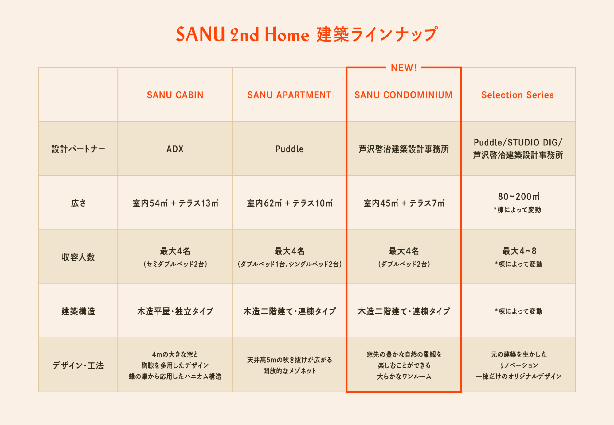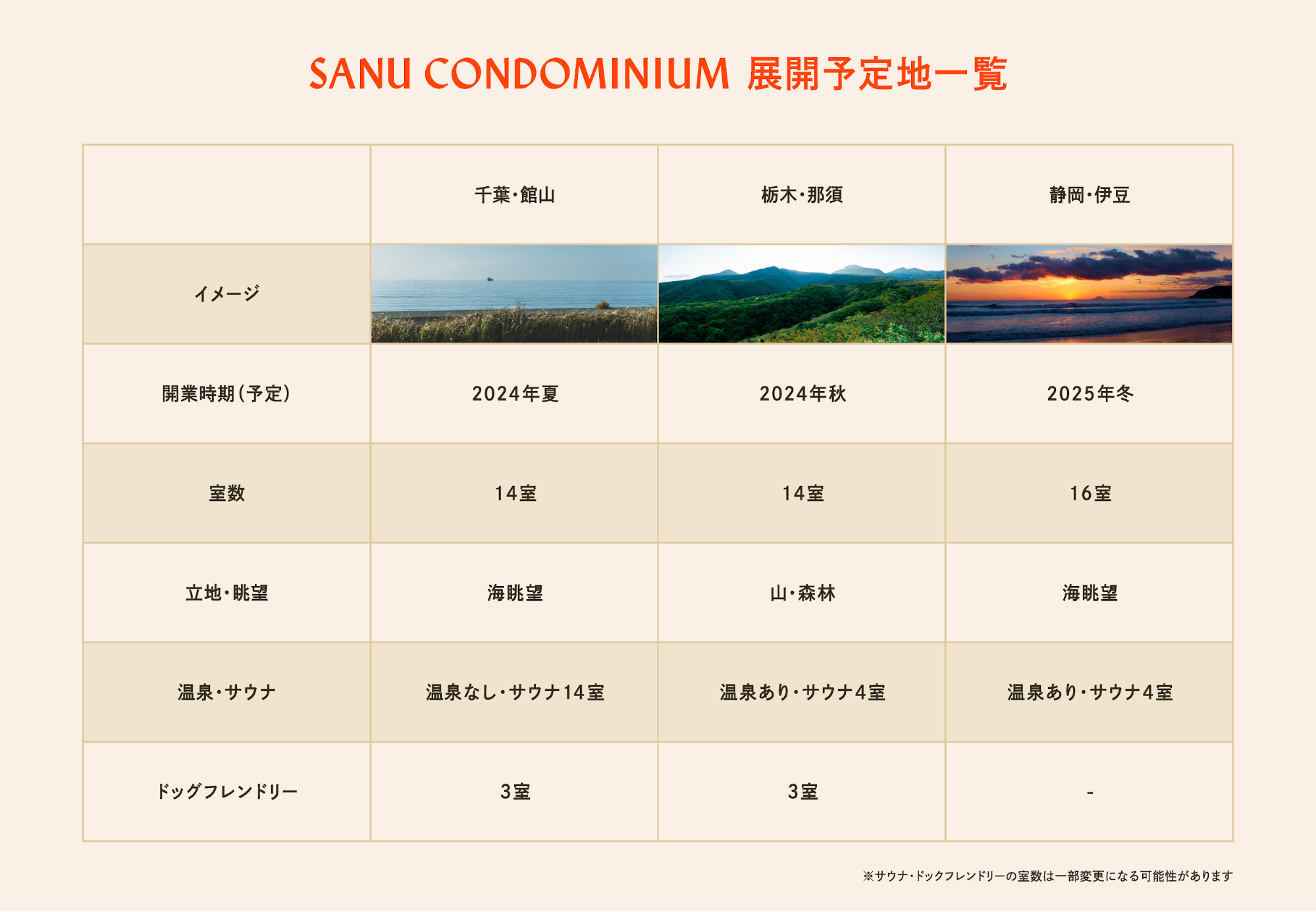 サービスリリースから2年を迎えた「SANU 2nd Home」は、この度新たな滞在拠点となる建築モデル「SANU CONDOMINIUM」を公開しました。2024年夏に開業を予定している館山(千葉県)を皮切りに、那須(栃木県)や伊豆(静岡県)での展開を予定しています。