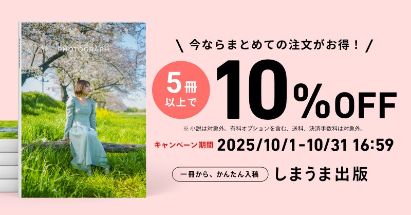 カメラのキタムラなどを展開するキタムラ・ホールディングス グループの株式会社しまうまプリント(本社:東京都新宿区、代表取締役社長:髙橋 洋一郎)の1冊から低価格で「ZINE(ジン)」を作れる冊子印刷サービス「しまうま出版」で、2025年10月1日(水) 10:00〜10月31日(金) 16:59の1ヶ月間、5冊以上のご注文いただくと商品代金が10%OFFになるキャンペーンを実施します。