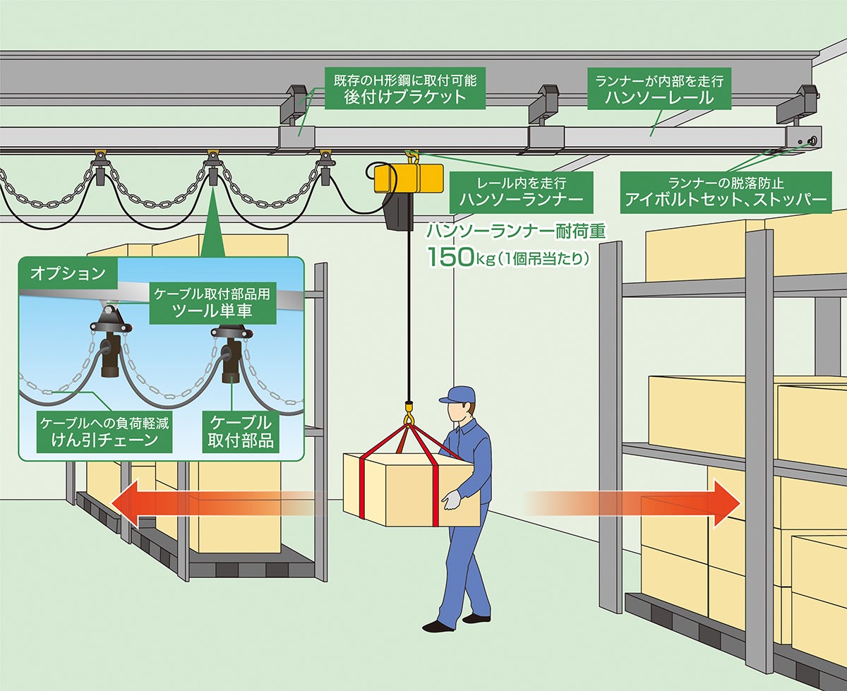 ※ハンソーランナー耐荷重:150㎏(1個吊当り)