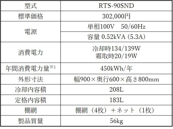 当社は、飲食店などでご利用いただいているテーブル形ショーケースのシリーズ機として、RTS-90SNDを2022年12月下旬より追加販売いたします。