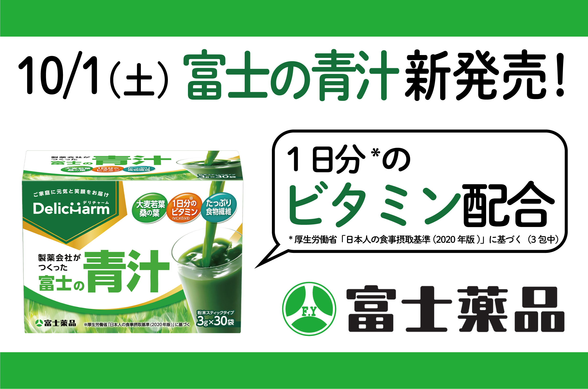 毎日続けやすい味で家族におすすめ!栄養成分の豊富な青汁素材配合の「富士の青汁」10/1(土)にリニューアル発売!