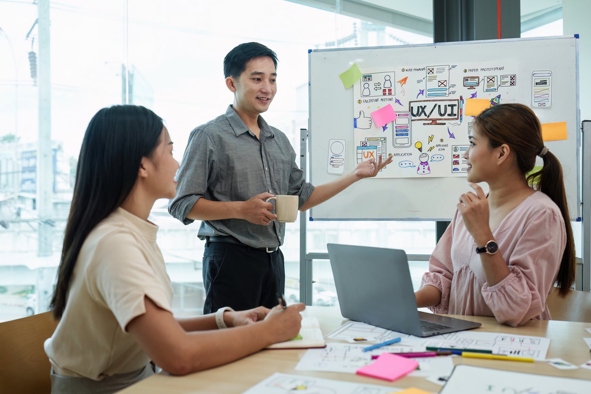 科目の前半では問題を解決するためのサービスやプロダクトのアイデアを各参加者が提案し、後半では、グループごとにアイデアをプロトタイプに発展させる工程を学びます。この科目では、協調作業とフィードバックの重要性にも焦点を当て、受講者同士でデザインを共有し、改善点をレビューします。最終回では各グループごとに完成させたプロトタイプをプレゼンテーションします。この過程を通じ、実践的体験としてのデザイン思考とプロトタイピングのプロセスを深く理解し、実務のプロジェクトへの応用能力を高めることを目指します。