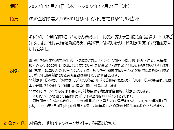 - 「かんでん暮らしモール」期間限定キャンペーンの概要