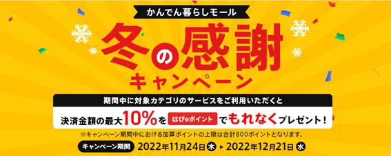 関西電力の「かんでん暮らしモール」にて【冬の感謝キャンペーン】を実施!決済金額の最大10%を「はぴeポイント」で“もれなく”プレゼント!