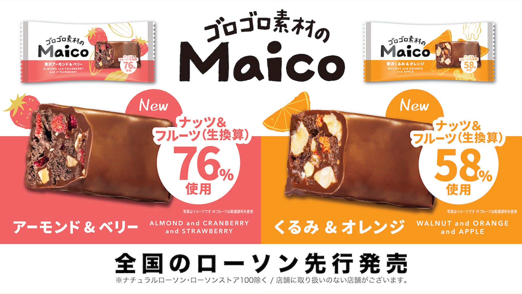 ■ ブラックサンダーでお馴染みの有楽製菓から新商品が2品同時発売!「Maicoアーモンド&ベリー」「Maicoくるみ&オレンジ」は全国のローソン(※1)先行発売開始!