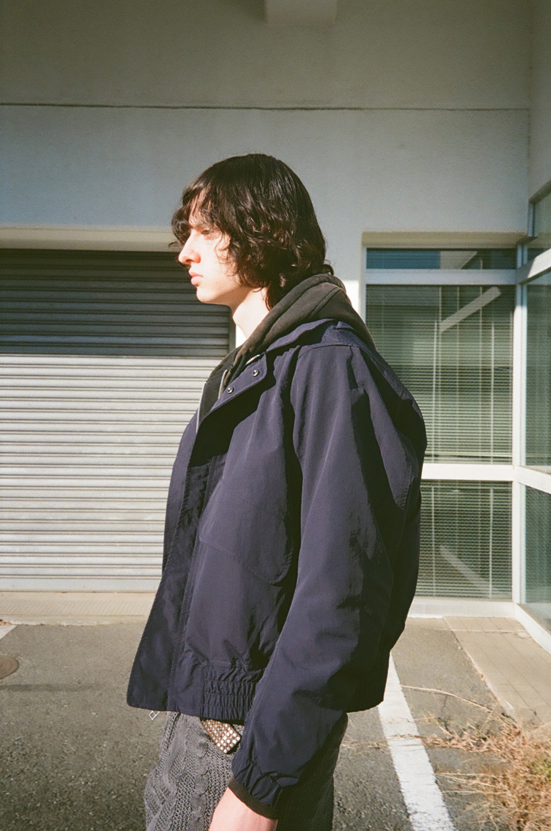 ナイロンタフタを使用したSTUDIOUS限定モデルのボンバージャケット。インラインのレザーボンバーJKTをベースに着想。比翼ジッパーフロントにピヴォットスリーブと特徴的なパネリングデザイン。フラップポケット上にハンドウォーマーポケットを配しアクションプリーツによりアーム可動域を確保しています。
