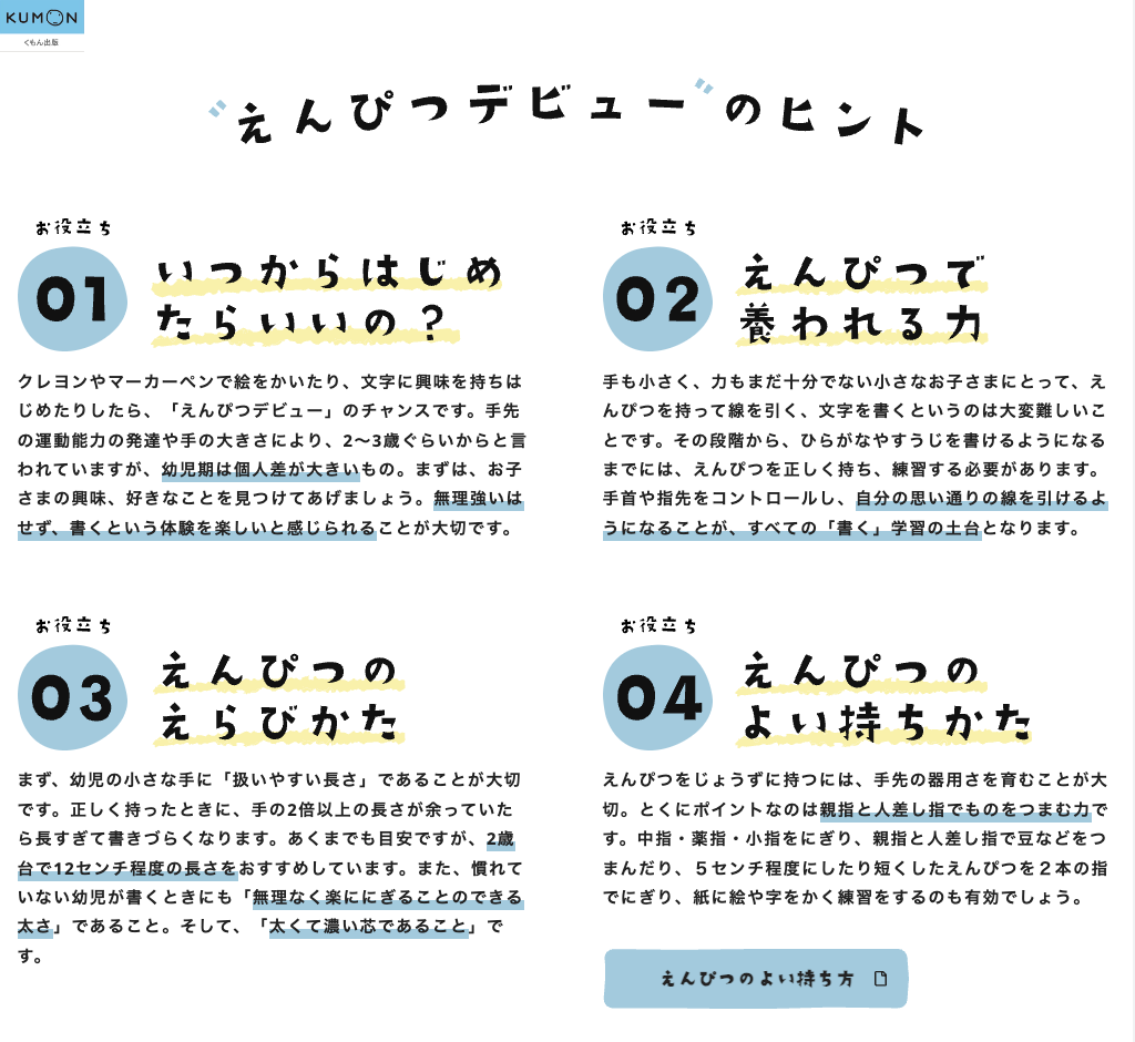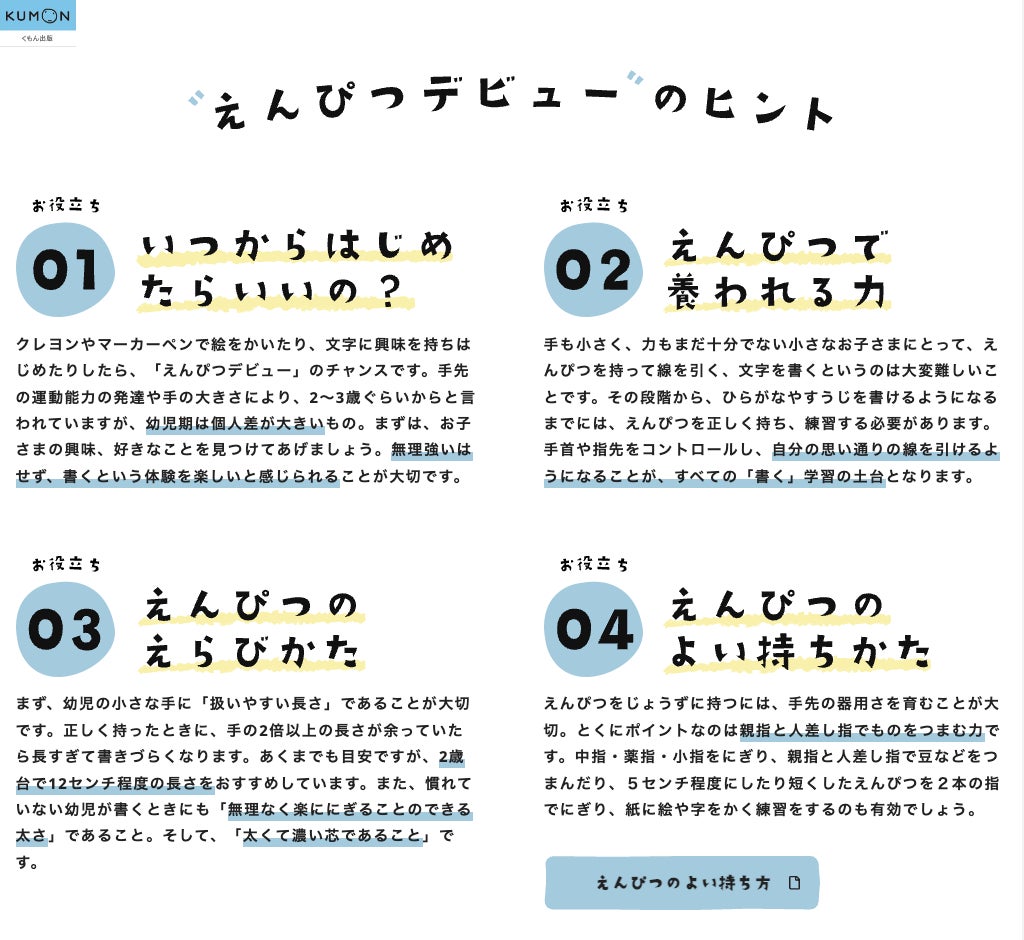 そんな思いから、くもんのノウハウを凝縮した「えんぴつ」の特設サイトを作りました。