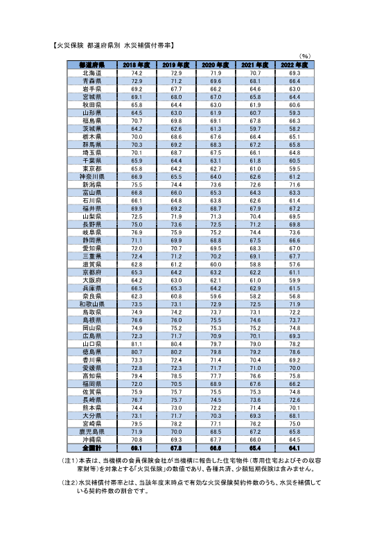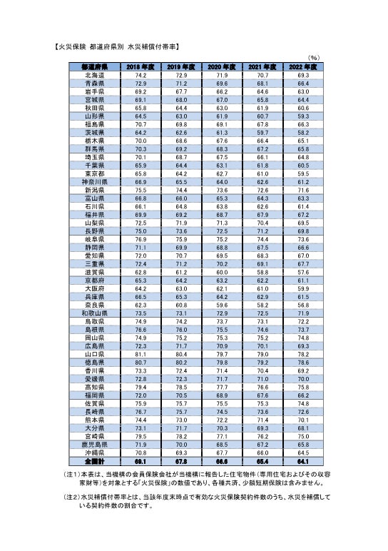 (注2)水災補償付帯率とは、当該年度末時点で有効な火災保険契約件数のうち、水災を補償している契約件数の割合です。